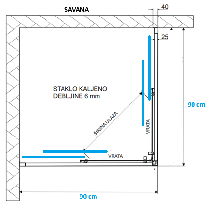 - Prilikom narudžbe kabine po mjeri, obavezno je potrebno priložiti skicu s željenim mjerama.